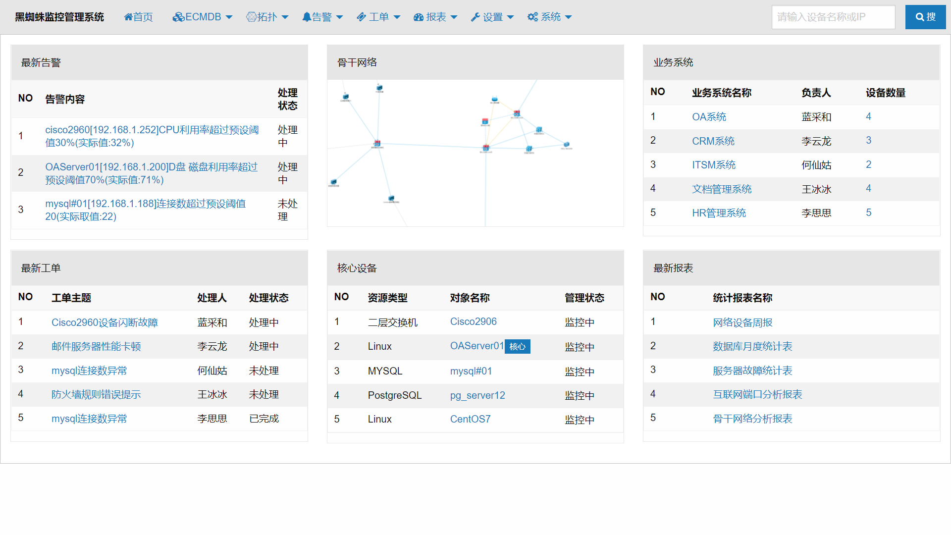 支持市面主流設(shè)備,應(yīng)用等監(jiān)控對象的綜合監(jiān)控
